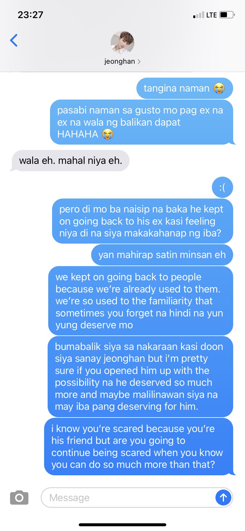 Pero sa puntong ito Hindi mo na siya pinatawad at tuluyan kusa kang lumayo. Niloko ka niya pero syempre tao din siya nagkakamali pero dapat kung hindi ka na niya mahal eh dapat sinabi niya sayo ng face to face. Its not the same.